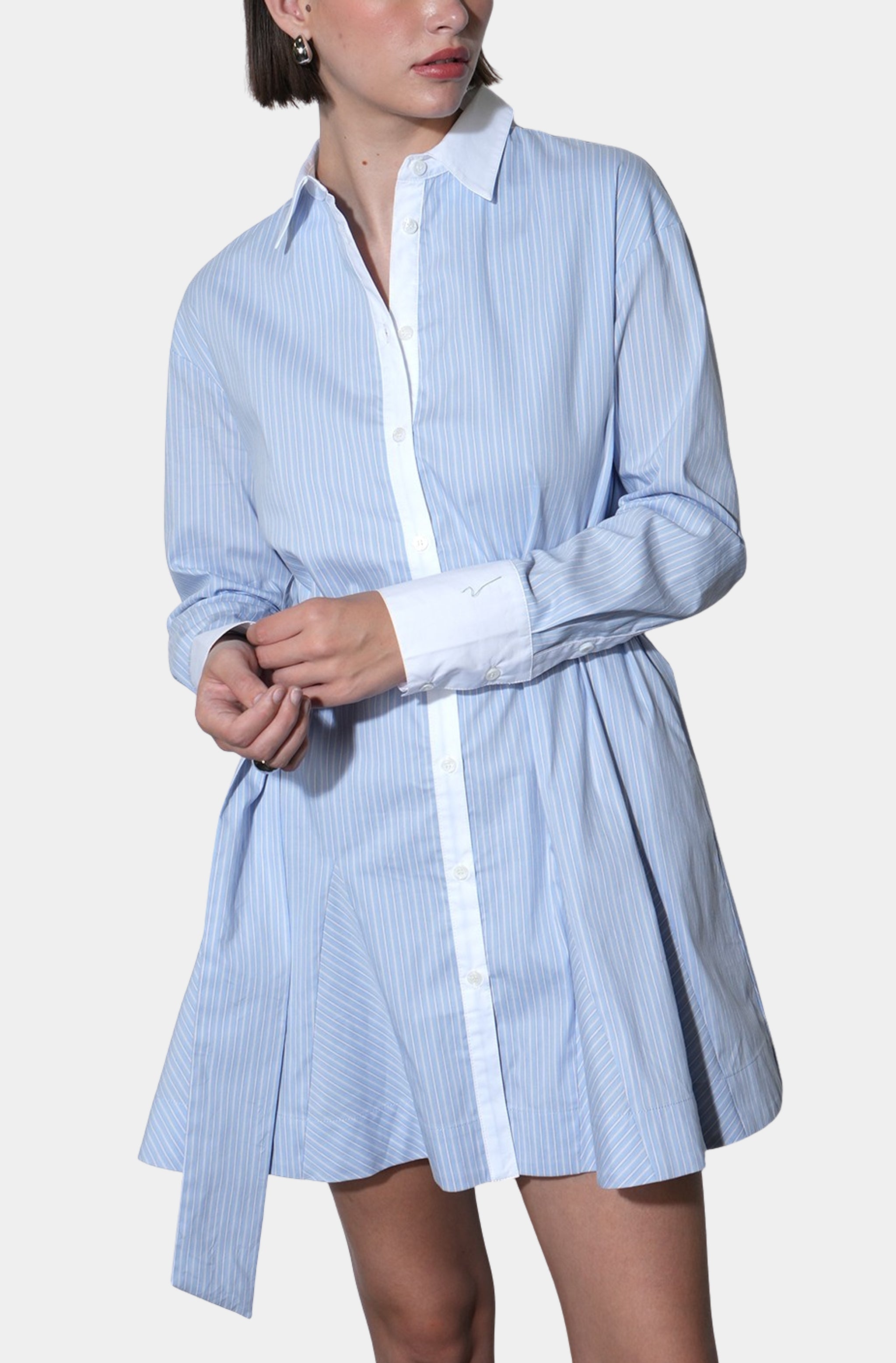 Faith Stripe Godet Mini Shirt Dress